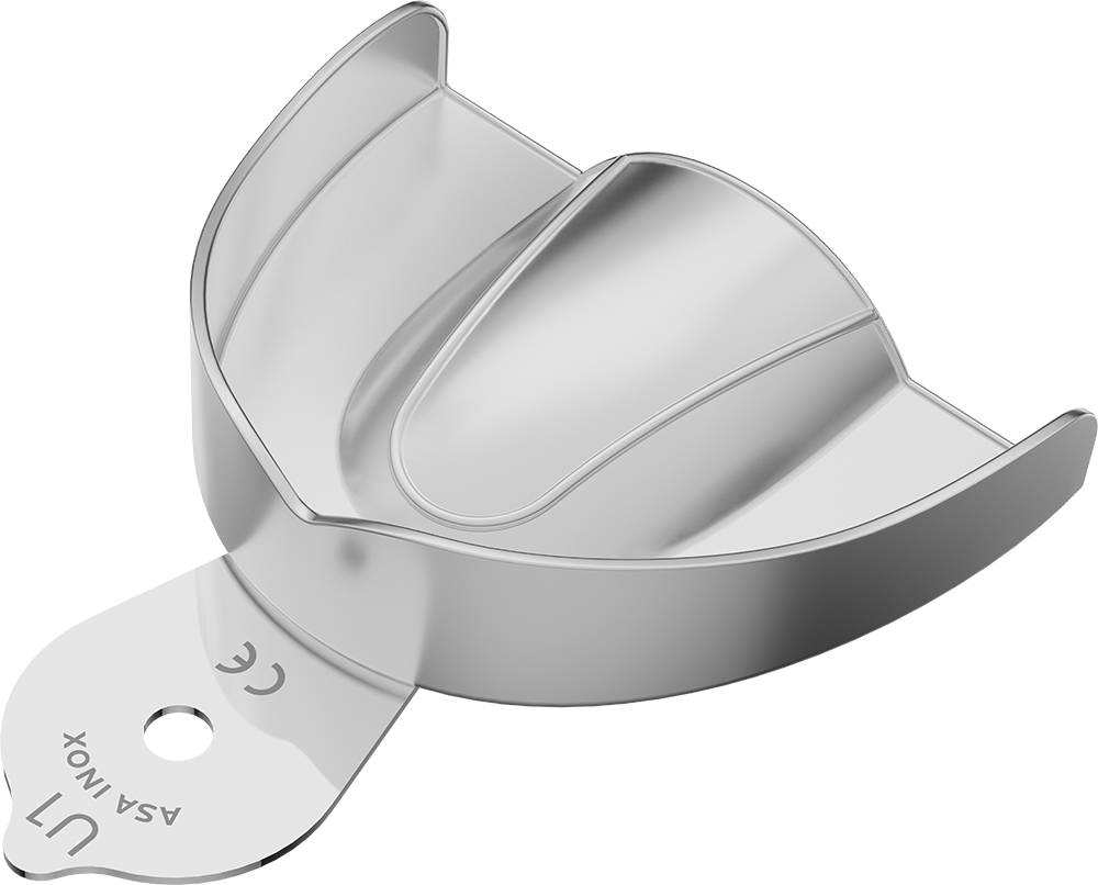 Nicht perforiert, Edelstahl - NEW SUPER high grip - größerer Retentionsrand und intern mit Satineffekt, Abformmaterial hält ohne Haftmittel - OK - XL