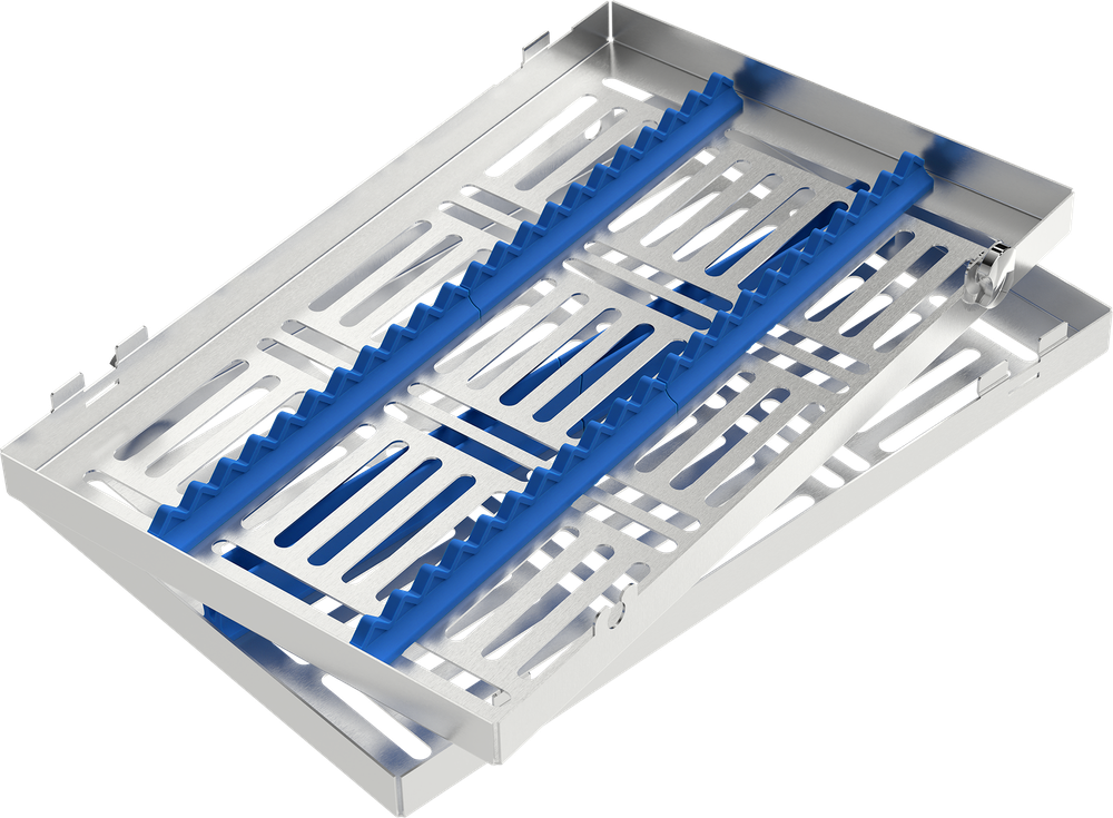 Blue - LARGE 288x182x34 mm - for 20 instruments complete with silicone rail