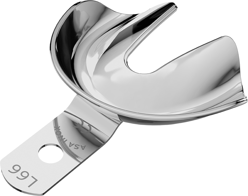 Aço inoxidável não perfurado - edêntulos - borda de retenção - INFERIOR - L